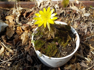 事務所と自宅の間に、妻が管理する庭があります。 そこに福寿草が一輪咲きまし